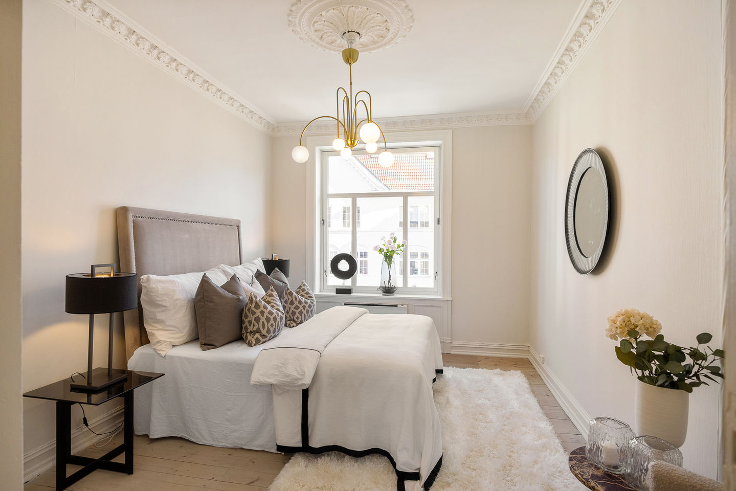 Alle leilighetene er unike og har god takhøyde med originale stukkaturer, vakre rosetter og mulighet for peis.