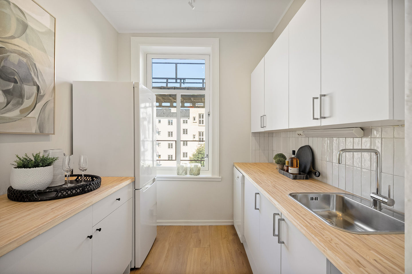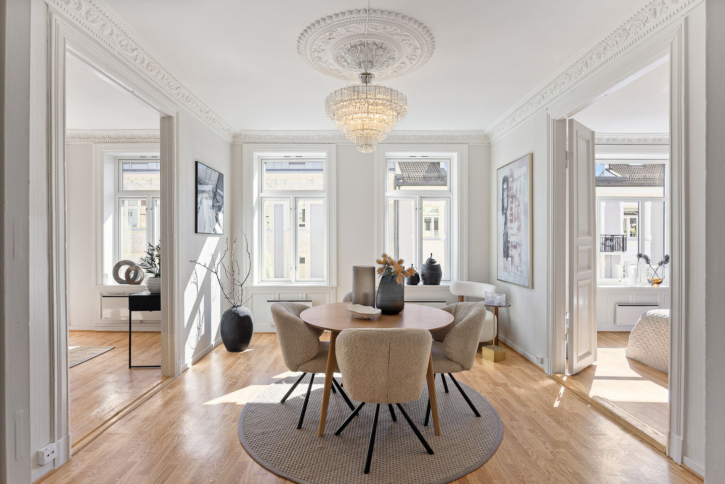 Her bor du i en attraktiv og historisk bygård fra 1898, preget av vakre originale detaljer, god takhøyde og store vindusflater som slipper inn rikelig med lys.